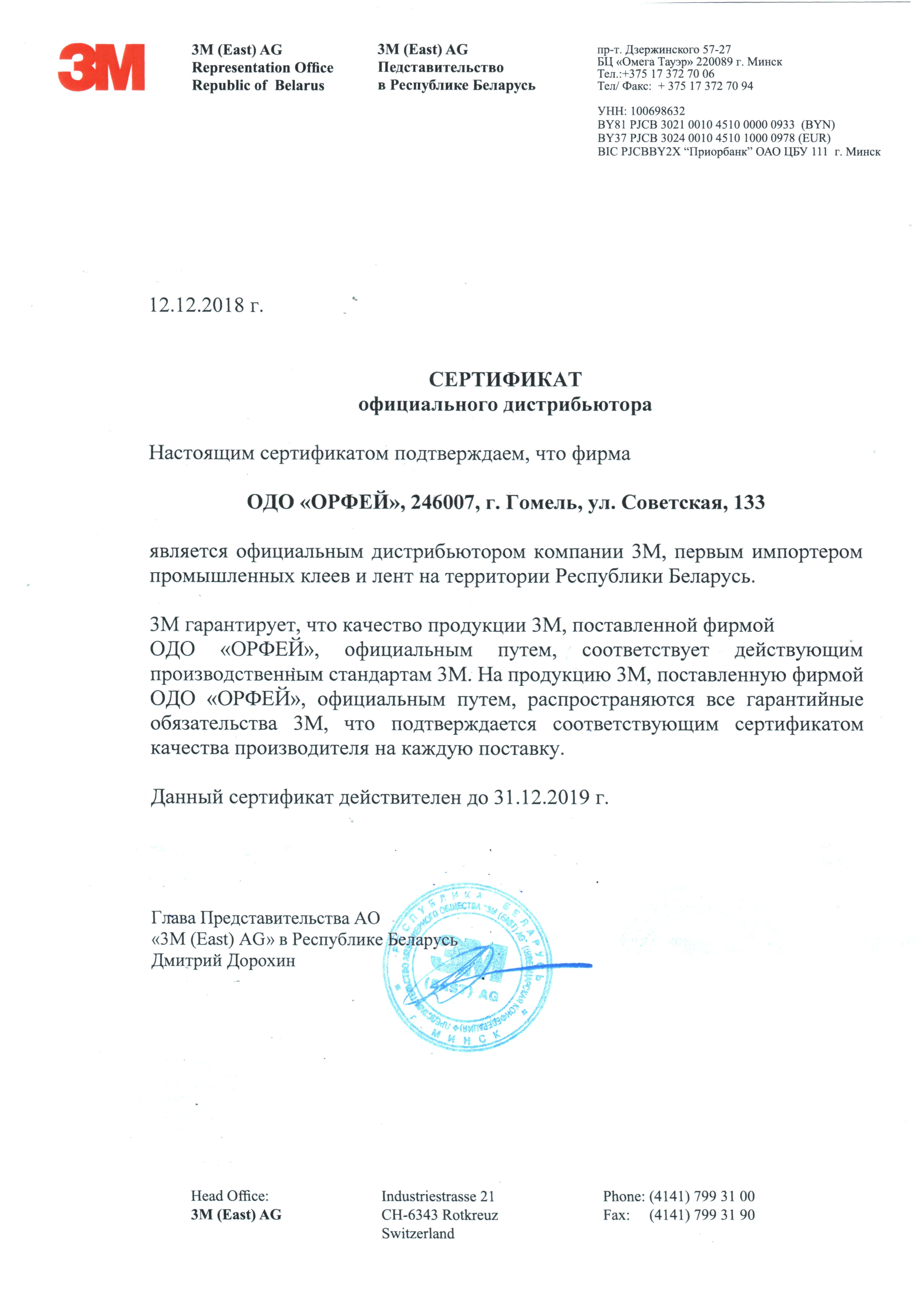 С 2011 года являемся официальным дистрибьютором 3М™ в Беларуси.
